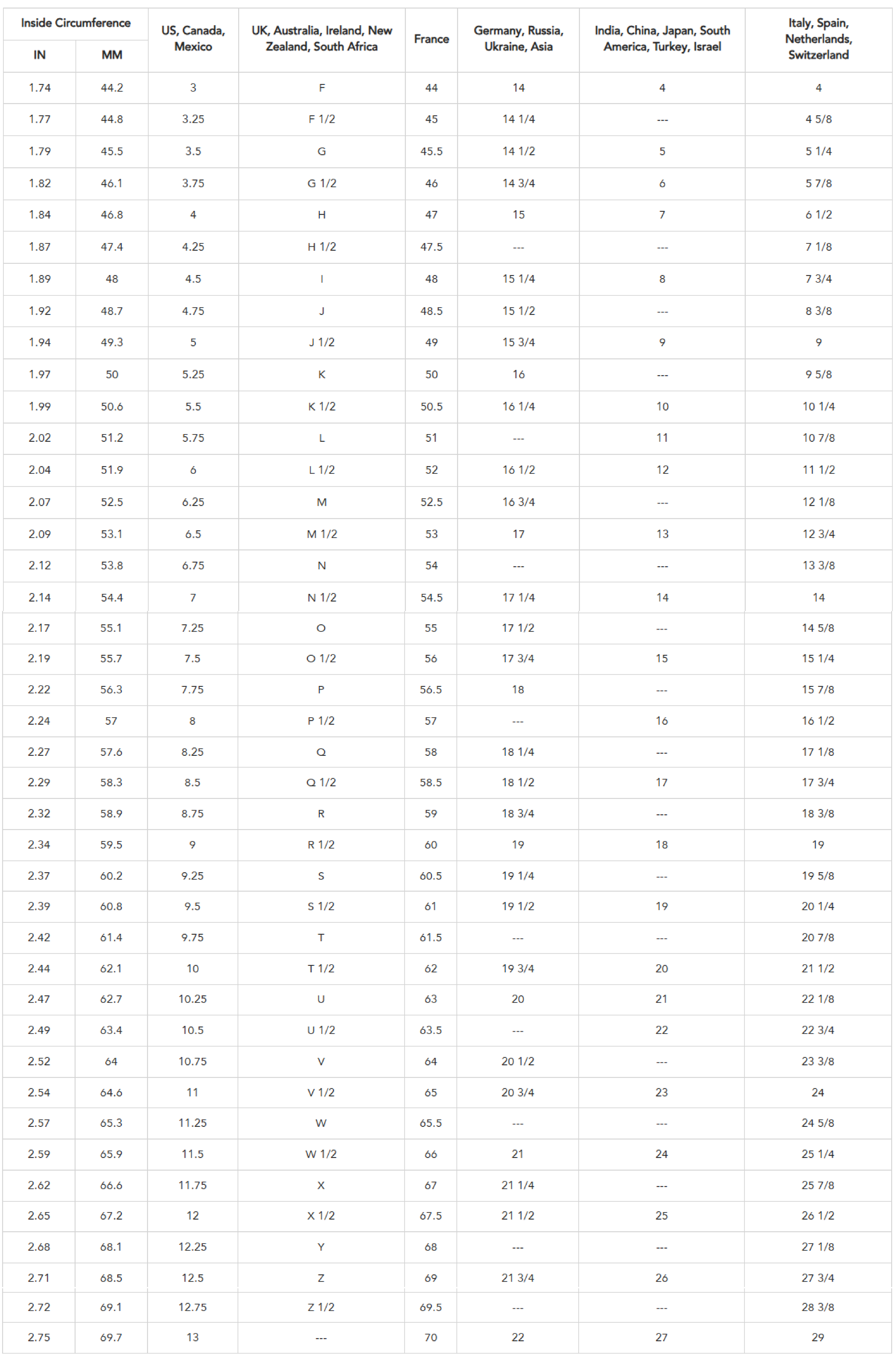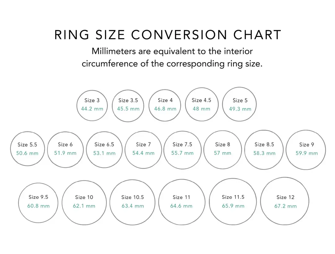 5. Use the Ring Size Conversion Chart to match the millimeter length to the corresponding ring size.